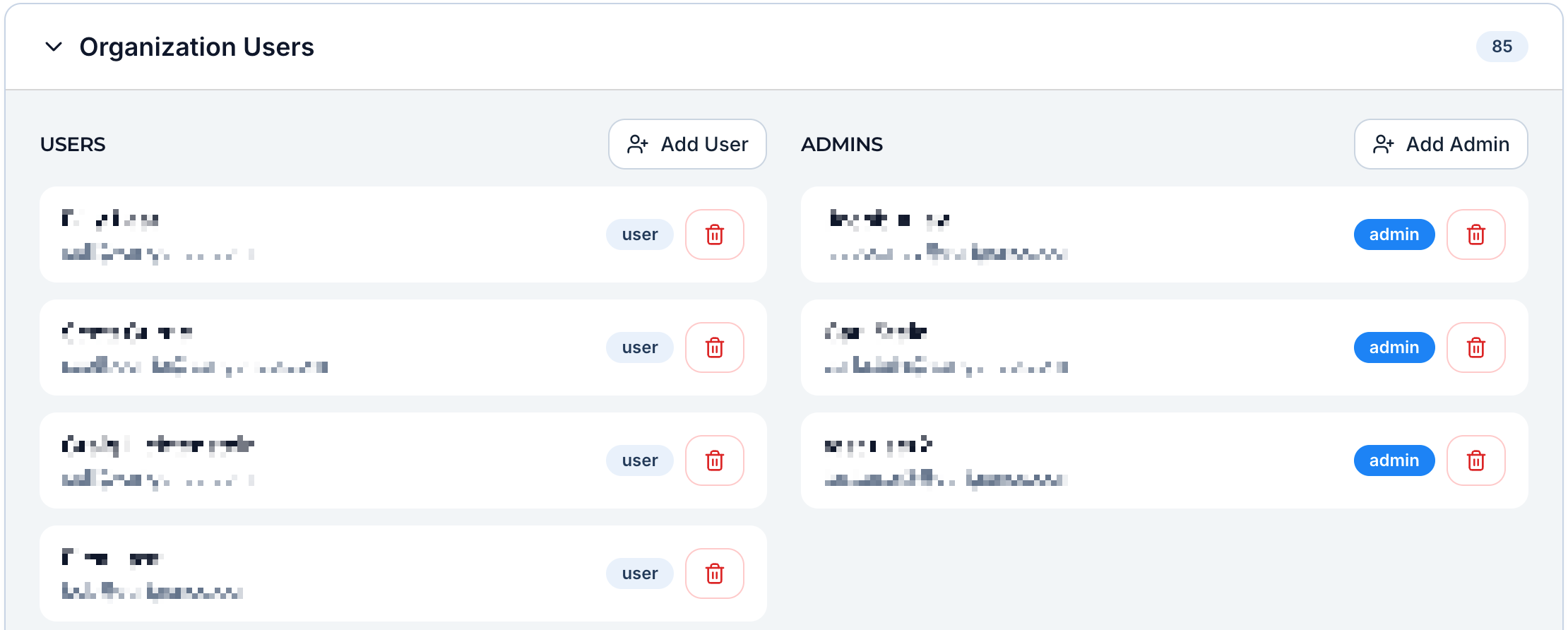 Admins can do everything a User can, plus manage organization-level access, user roles, and license assignments (and, in some cases, billing).